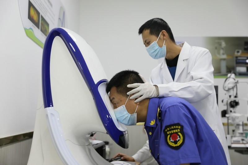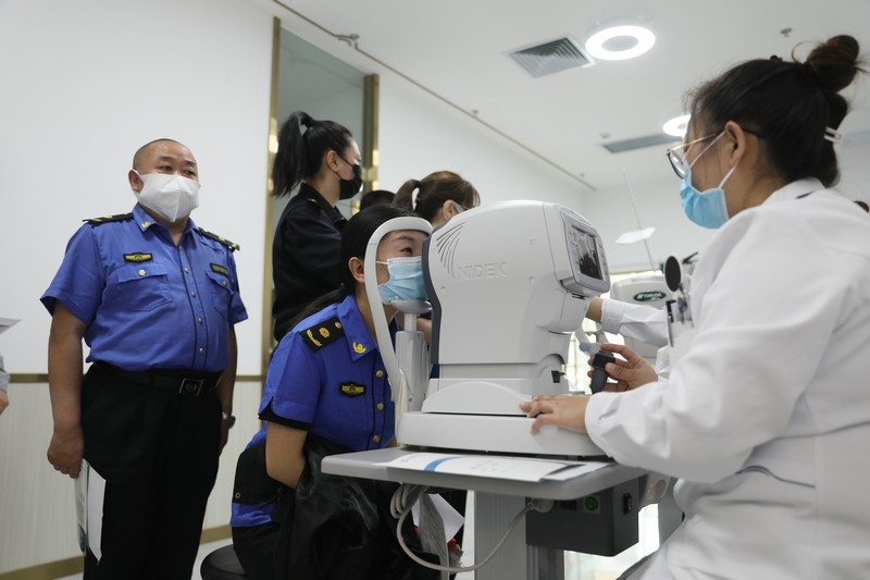 活動現(xiàn)場,醫(yī)院派出了一流的醫(yī)護人員為抗疫人員進行眼健康項目檢查,并對檢查中發(fā)現(xiàn)問題的人提供一對一的專家咨詢服務。