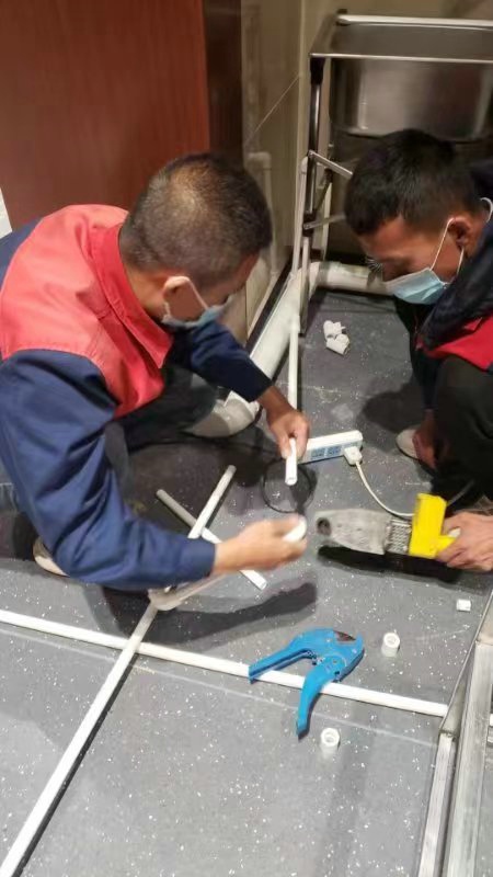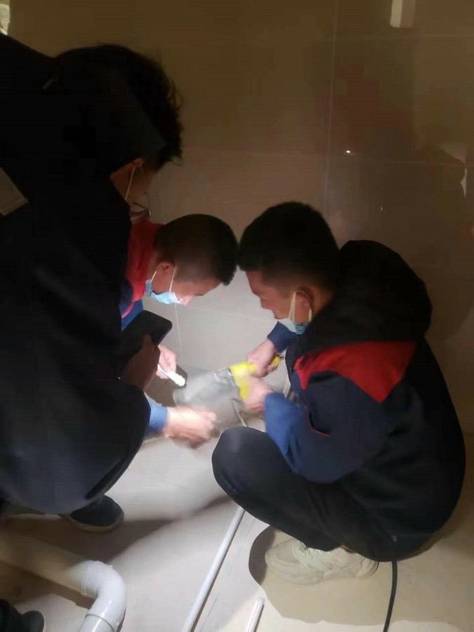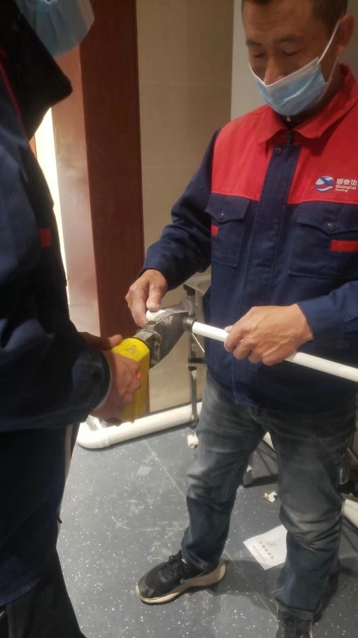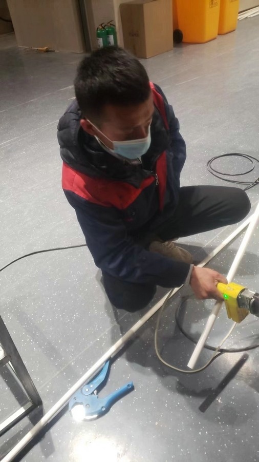 深夜,氣溫突降,冷風(fēng)毫不留情地灌入現(xiàn)場(chǎng)施工人員的衣服里,但無(wú)一人松勁、無(wú)一人退縮。由于材料分布范圍較大,只見(jiàn)身穿紅、藍(lán)工作服的他們徒步穿梭于各樓層之間,一刻不停地搬運(yùn)管件及材料、安裝設(shè)備。因疫情管控不能到現(xiàn)場(chǎng)的同事則堅(jiān)持利用通訊工具提供遠(yuǎn)程技術(shù)支持,為前線答疑解惑。方艙醫(yī)院建設(shè)屬于應(yīng)急工程,時(shí)間緊、任務(wù)重,加之現(xiàn)場(chǎng)材料缺乏,施工人員只能就地取材,爭(zhēng)分奪秒的同時(shí),“突擊隊(duì)”表現(xiàn)出了高度的專(zhuān)業(yè)性,迅速、細(xì)致、高效地進(jìn)行管道鋪設(shè)和熱水器安裝……凌晨4點(diǎn),在現(xiàn)場(chǎng)全體施工人員的共同努力下,方艙醫(yī)院水暖安裝工作順利完成。