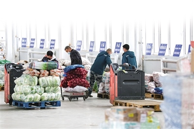 疫情防控期間,為保障呼和浩特市民生活物資需求,首府積極組織貨源,優(yōu)化配送方式,全力加強(qiáng)市場(chǎng)供給。目前,城區(qū)多家線上平臺(tái)、大型超市、農(nóng)貿(mào)市場(chǎng)商品品種齊全、供應(yīng)充足。10月10日,記者在家家悅內(nèi)蒙古生鮮倉看到,為了保證市民線上下單的及時(shí)配送,工作人員正在線下忙碌。