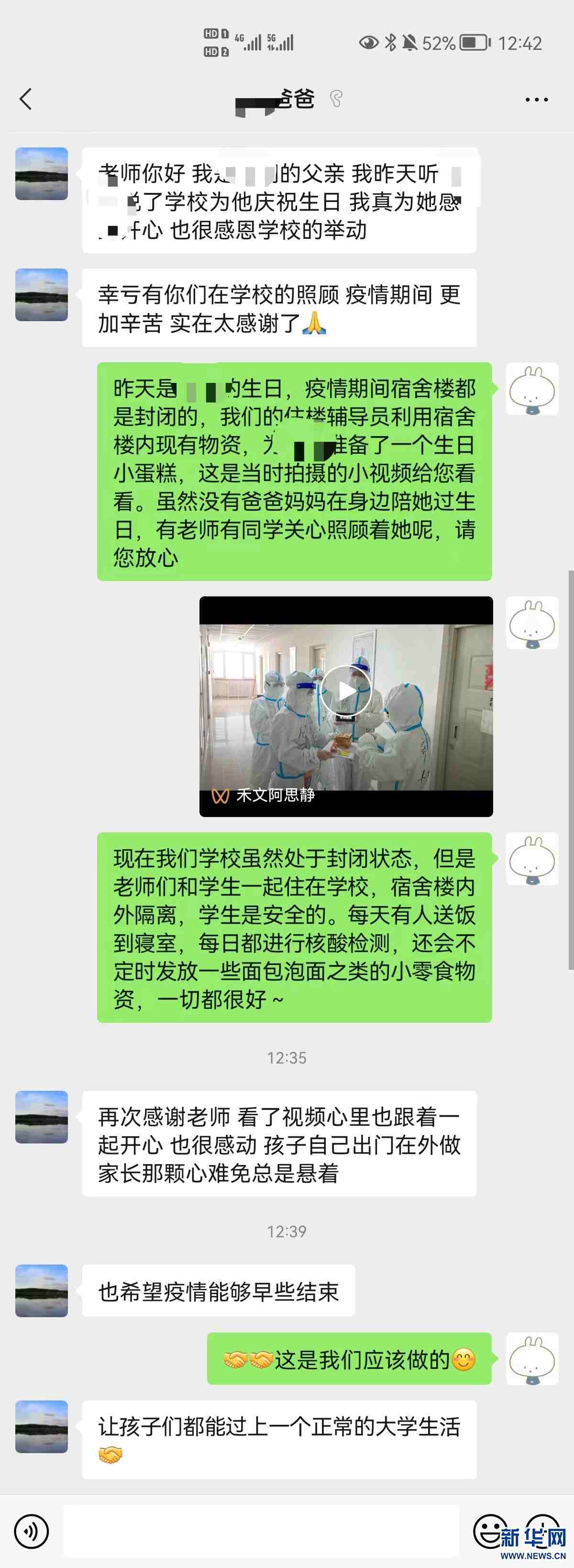 內蒙古工業(yè)大學北二公寓學生家長向老師們表示感謝。新華網發(fā)(受訪者供圖)
