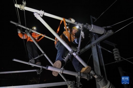 每日0至4時(shí),中國(guó)鐵路上海局集團(tuán)有限公司上海高鐵基礎(chǔ)設(shè)施段的綜合維修工們都要在滬寧城際高鐵沿線(xiàn)對(duì)接觸網(wǎng)設(shè)備進(jìn)行全面“體檢”,守護(hù)高鐵運(yùn)行安全。綜合維修工的日常工作包括接觸網(wǎng)絕緣子清掃、吊弦更換、隔離開(kāi)關(guān)檢修等。