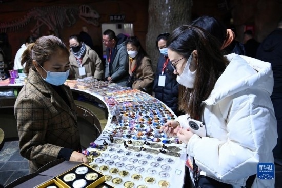 3月4日,游客在嘉峪關(guān)長(zhǎng)城第一墩景區(qū)選購文創(chuàng)產(chǎn)品。
