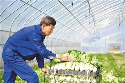 江西省上饒市鉛山縣通過“龍頭企業(yè)+村集體經(jīng)濟合作社+農戶”模式,建設萬畝蔬菜基地,促進農民增收。圖為3月6日,村民在鉛山縣永平鎮(zhèn)缸瓦窯萬畝蔬菜基地采收蔬菜。 丁銘華攝(人民視覺)
