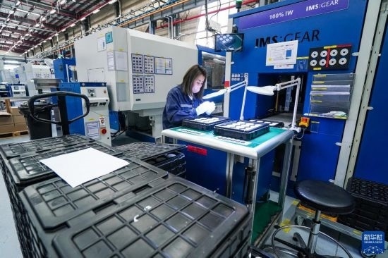 工人在位于太倉市高新區(qū)的威爾斯新材料(太倉)有限公司生產(chǎn)車間內(nèi)進行加工作業(yè)(3月16日攝)。