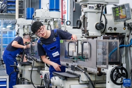 在位于太倉市高新區(qū)的億邁齒輪(太倉)有限公司學(xué)徒車間內(nèi),學(xué)徒在學(xué)習(xí)了解生產(chǎn)設(shè)備(3月14日攝)。