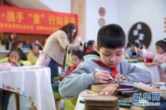 8歲的土旦卡卓是來自青海玉樹藏族自治州的藏族小朋友,她在為手中紙質(zhì)瑤琴涂畫的同時也學習著其他民族的文化風俗。