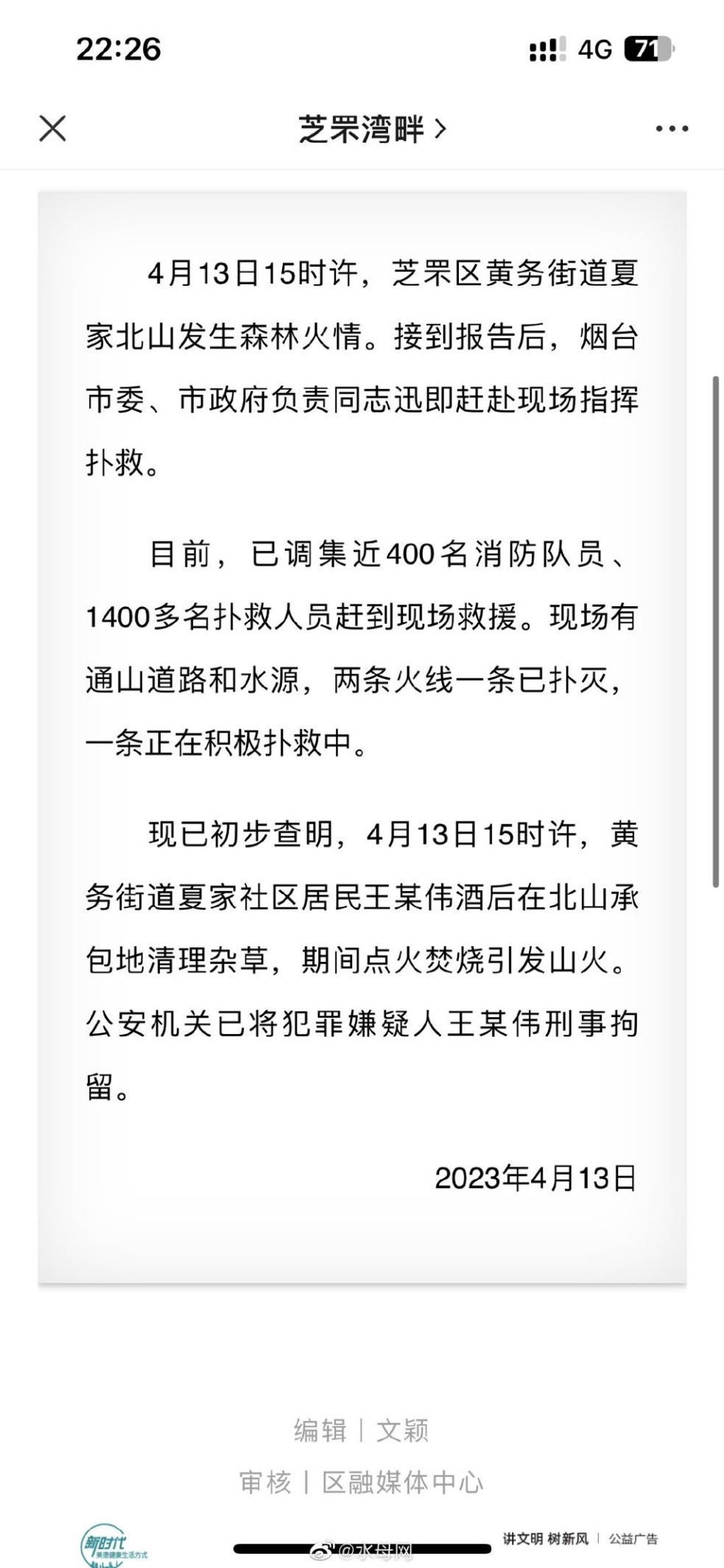 ·官方通報(bào)煙臺(tái)山火:系居民焚燒雜草引發(fā),犯罪嫌疑人已被刑事拘留。