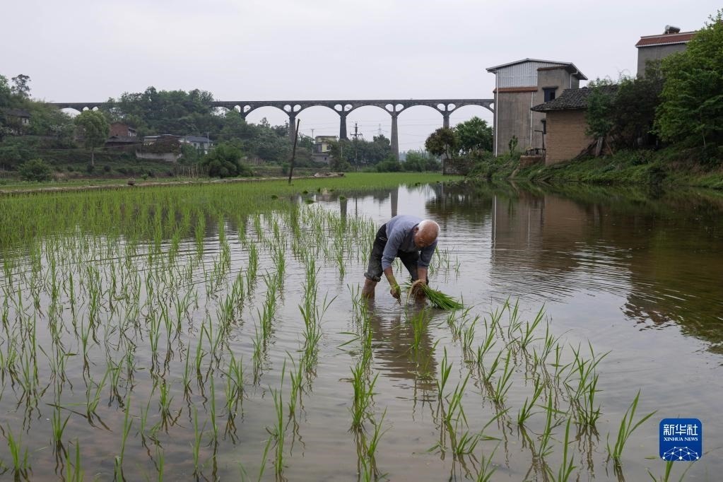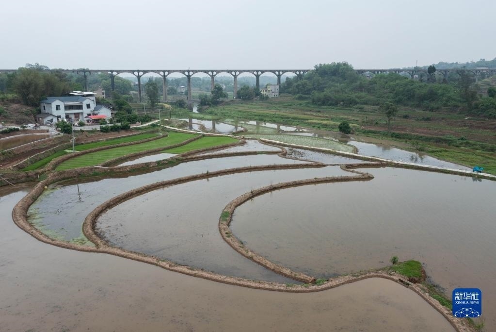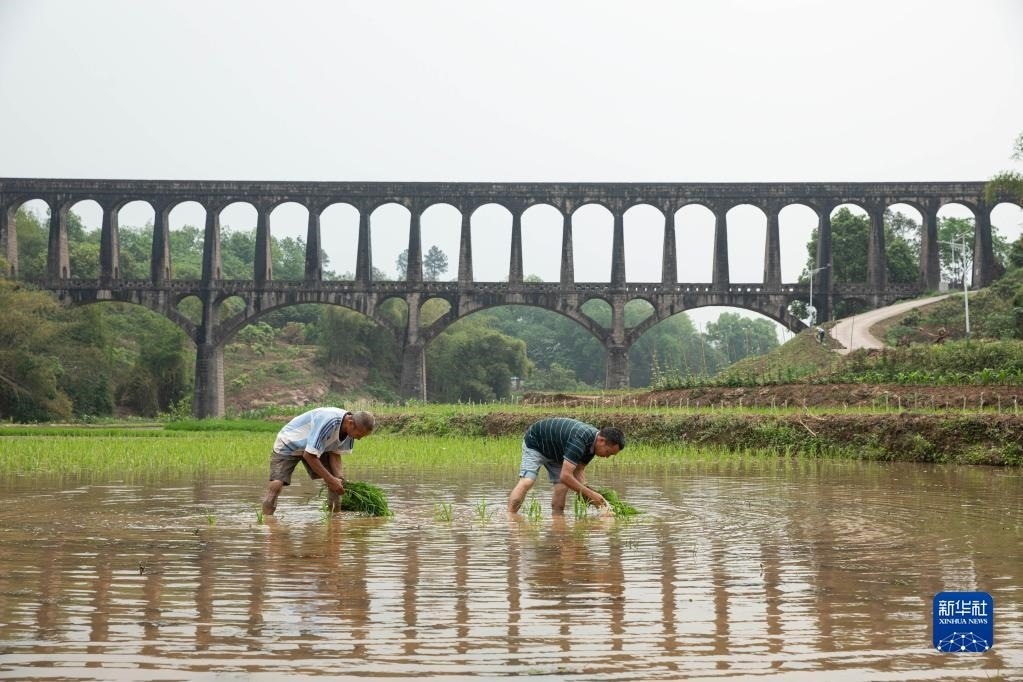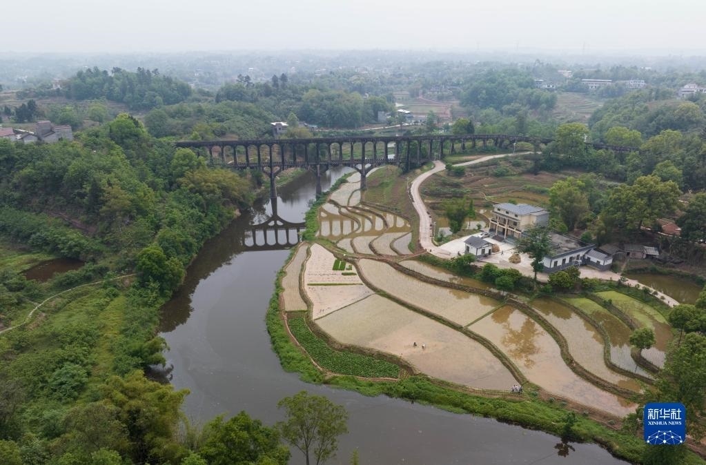 目前,四川省瀘縣正值插秧時(shí)節(jié),有“人工天河”之稱的瀘縣引水渡槽越過山丘、穿過農(nóng)田,仍在引水灌溉中發(fā)揮重要作用。