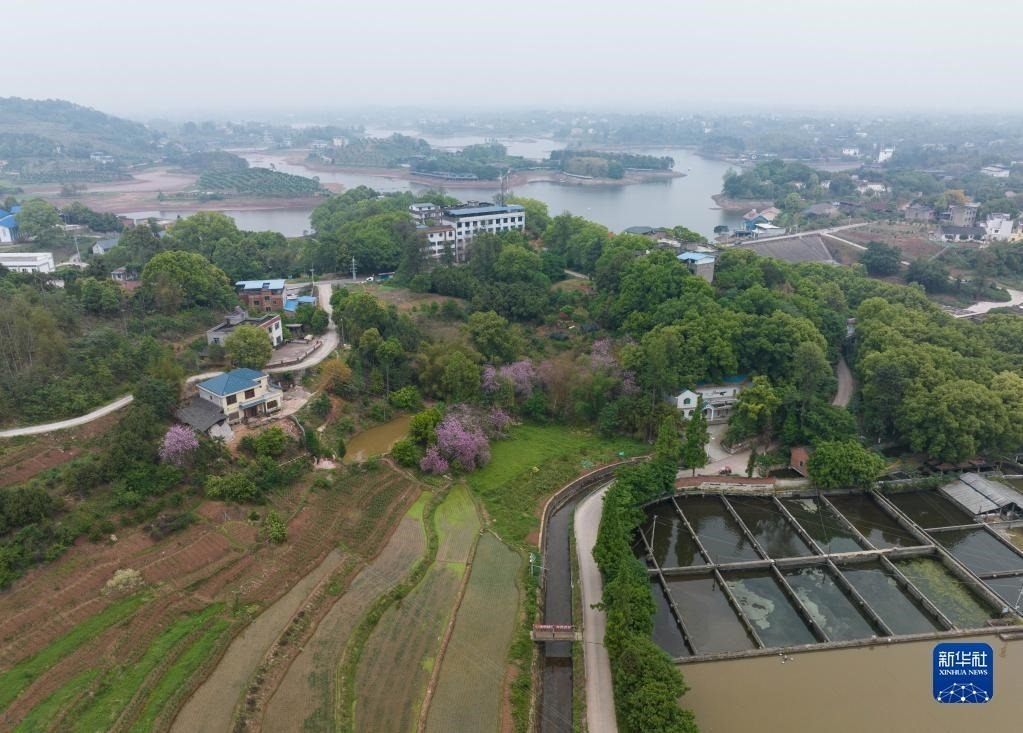 4月25日在瀘縣奇峰鎮(zhèn)拍攝的勝利渡槽(無人機(jī)照片)。跨越龍溪河的勝利渡槽分上下兩層,上層通水,下層為人行通道,非常獨(dú)特。