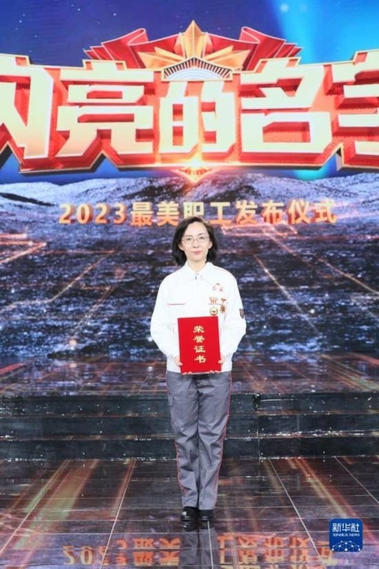 2023年“最美職工”在發(fā)布儀式上合影留念(4月21日攝)。新華社發(fā)(王鑫 攝)