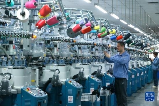 5月4日,在山東省青島市即墨區(qū)一家制襪企業(yè),工人生產出口到海外市場的產品。