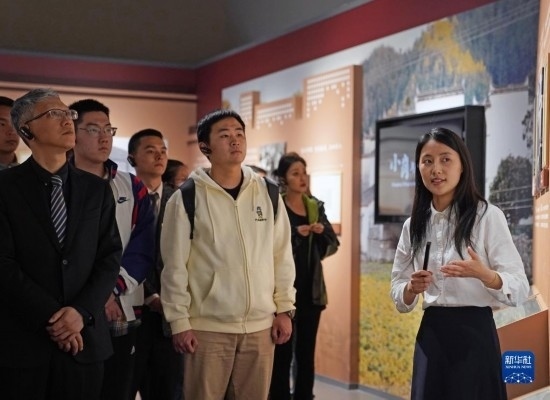 4月28日,在上海市檔案館的展廳內,編研部工作人員戴舒(右一)為參觀者講解。檔案館的青年組成“上海市檔案館青年檔案文化志愿宣講團隊”,常年擔任館內展覽的志愿講解員。