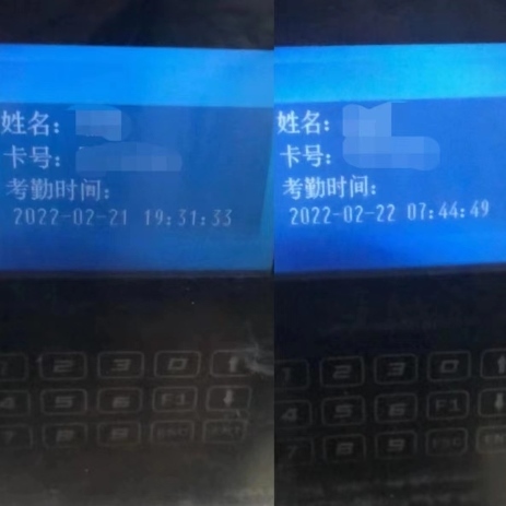李奕上(左)下(右)班打卡記錄。受訪者供圖