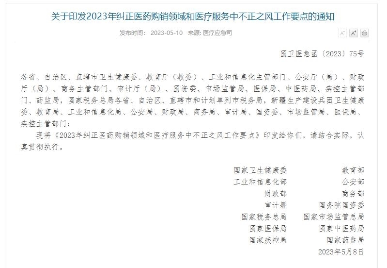 ·14部門(mén)聯(lián)合發(fā)文:糾正醫(yī)藥購(gòu)銷(xiāo)領(lǐng)域和醫(yī)療服務(wù)中不正之風(fēng)。