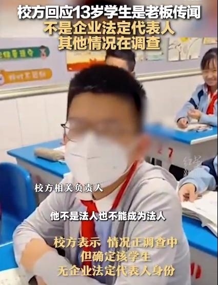 ·校方回應(yīng)網(wǎng)傳13歲學(xué)生是公司老板: 不是企業(yè)法定代表人,其他情況在調(diào)查。