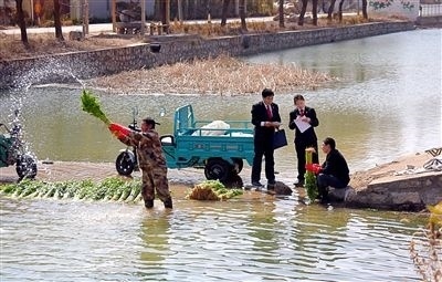 圖③:沂源法院悅莊人民法庭的干警進村對菜農(nóng)進行交易風(fēng)險提示。(資料圖片)