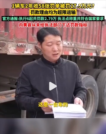 ·官方通報“貨車2年被罰27.5萬”:執(zhí)行6起共罰款2.79萬,內(nèi)黃縣從未給執(zhí)法部門下達罰款指標。