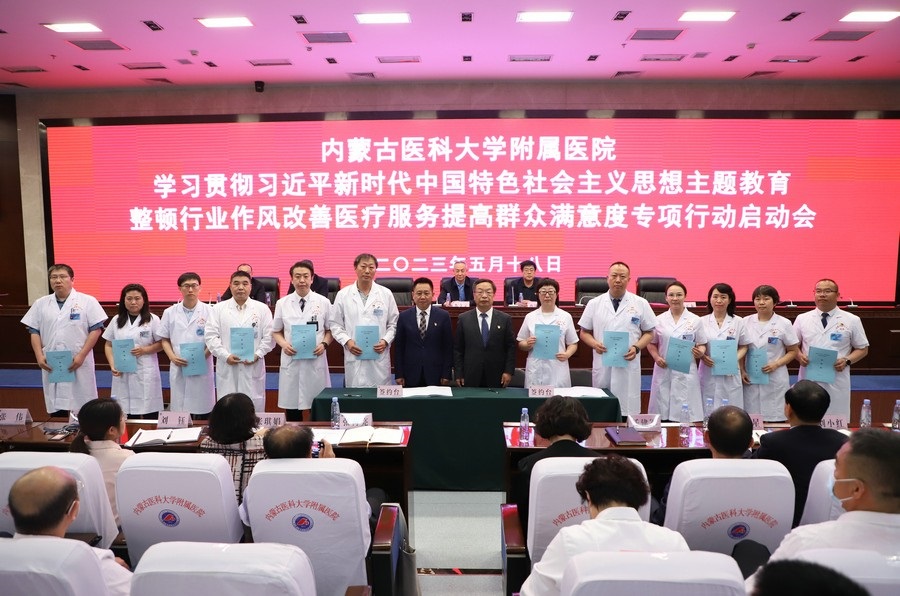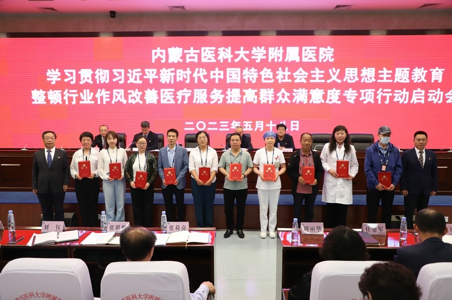 啟動會上,內蒙古醫(yī)科大學黨委委員、附屬醫(yī)院黨委書記張立東,醫(yī)院黨委委員、紀委書記劉玉龍與專項行動工作小組組長簽訂責任狀,并為10名社會監(jiān)督員頒發(fā)聘書。