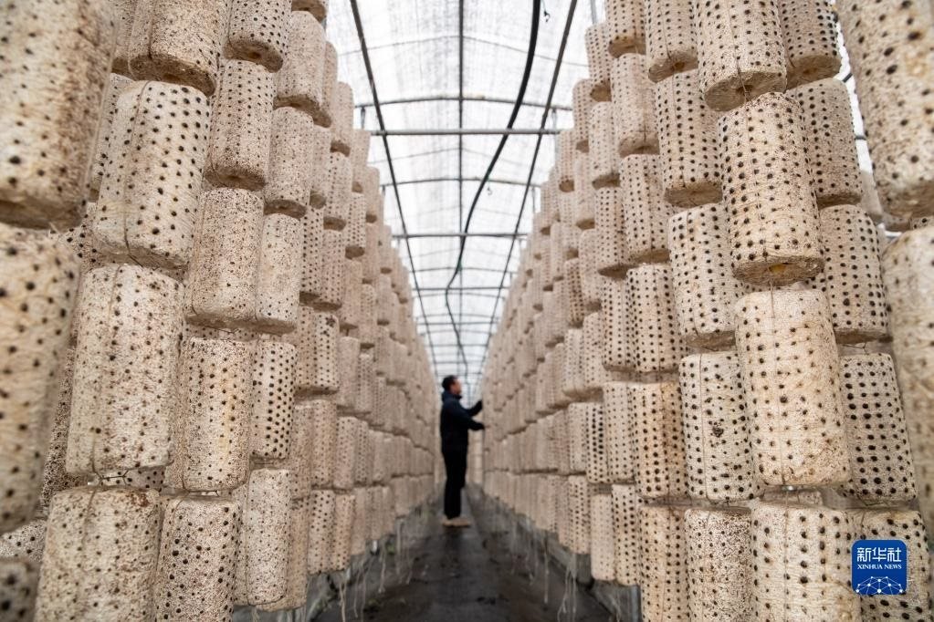 5月20日,在伊春森工集團(tuán)上甘嶺林業(yè)局公司,工作人員在檢查木耳生長情況。