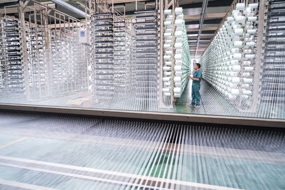 工人在位于蘇州市吳江區(qū)盛澤鎮(zhèn)的恒力集團博雅達紡織智能車間作業(yè)(2021年5月14日攝)。新華社記者 李博 攝