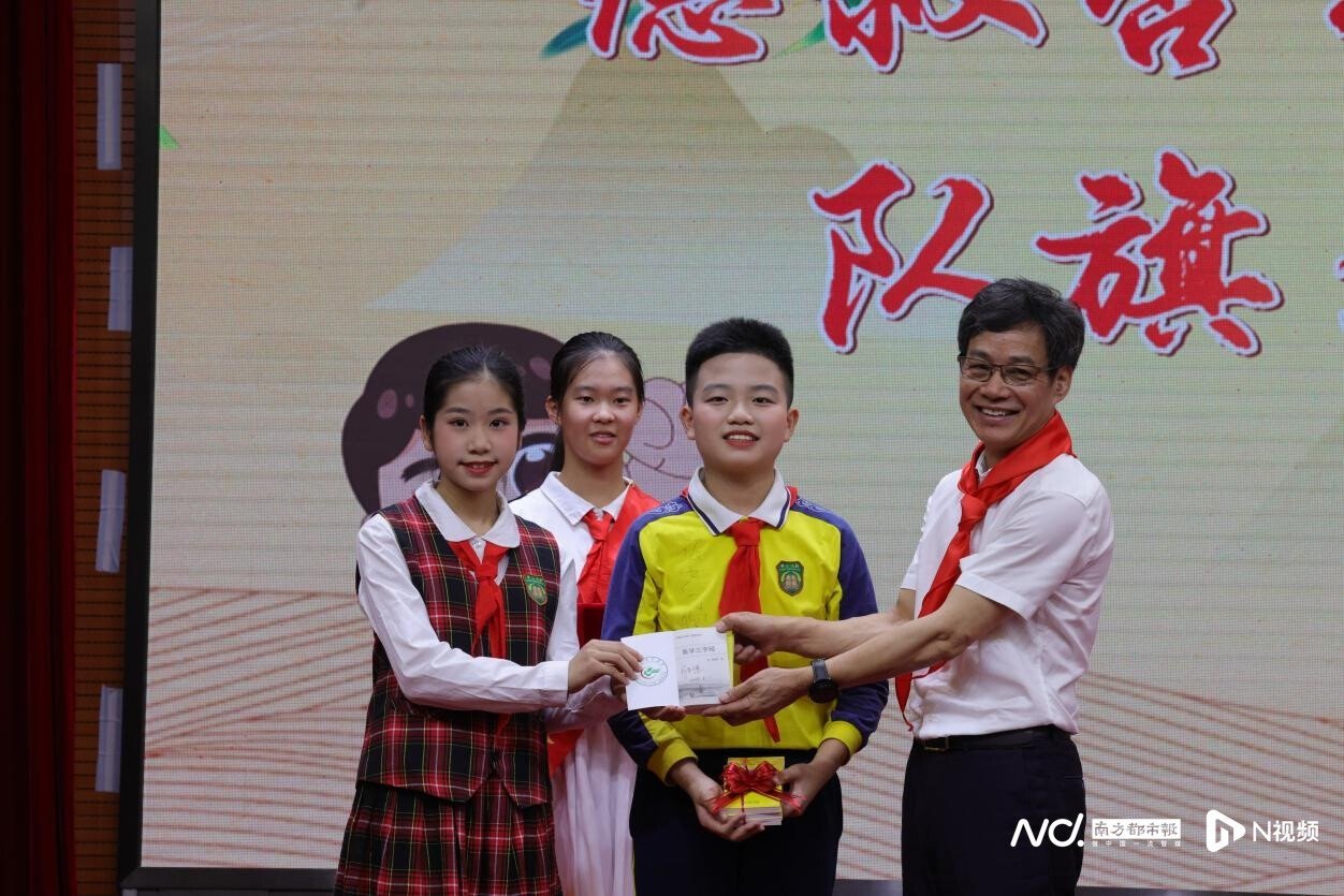 近年來,廣東省中醫(yī)院開展中醫(yī)藥文化進校園活動。5月31日,第一屆“德叔杏林研學中隊”的隊員即將畢業(yè),他們將隊旗鄭重地交回德叔手中,并收下德叔親筆簽名的《醫(yī)學三字經(jīng)》。而這面象征中醫(yī)藥文化的隊旗也傳遞到新一屆“德叔杏林研學中隊”隊員的手中,同時,德叔還贈送了中藥種子,寓意中醫(yī)藥文化生生不息、薪火傳承,在雙方共同打造的這片中醫(yī)藥文化熱土生根發(fā)芽,開花結果。