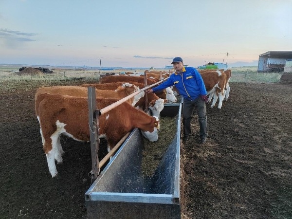 張愛(ài)忠是錫林郭勒盟阿巴嘎旗別力古臺(tái)鎮(zhèn)敖倫寶拉格嘎查的一位牧民,他的家庭牧場(chǎng)飼養(yǎng)了200頭西門塔爾牛,承包草場(chǎng)面積10670畝。今年2月,他成功獲得職業(yè)牧民初級(jí)職稱,成為內(nèi)蒙古首批獲得職業(yè)牧民職稱的牧民之一。