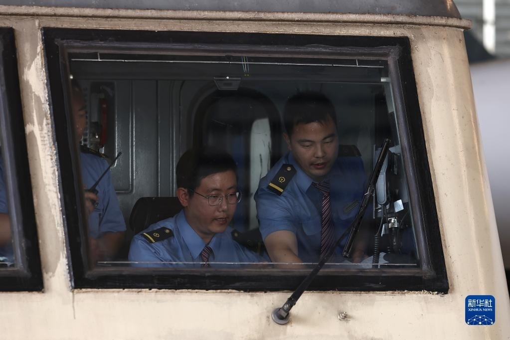 6月15日,滬寧沿江高鐵檢測列車的工作人員在做發(fā)車前的準(zhǔn)備。