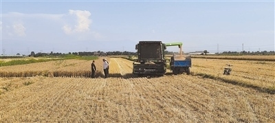 法官查看麥收情況。