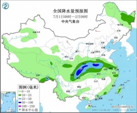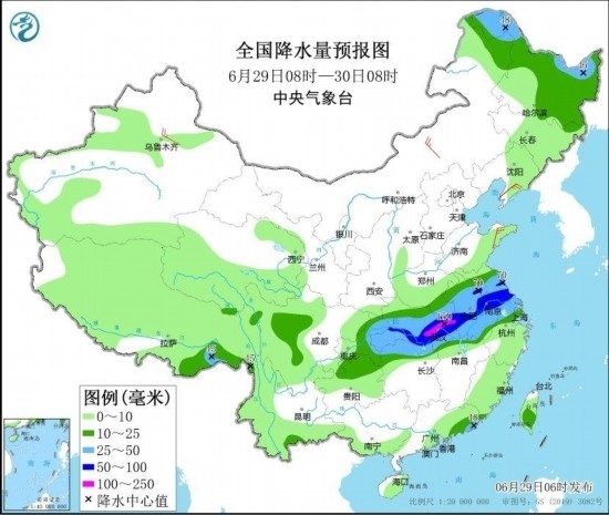 6月29日至30日,四川盆地、黃淮南部、江淮、江漢、江南北部、西南地區(qū)東部及東北地區(qū)等地有中到大雨,部分地區(qū)暴雨,湖北東部局地大暴雨,上述地區(qū)局地伴有明顯短時(shí)強(qiáng)降水、雷暴大風(fēng)或冰雹等強(qiáng)對(duì)流天氣。