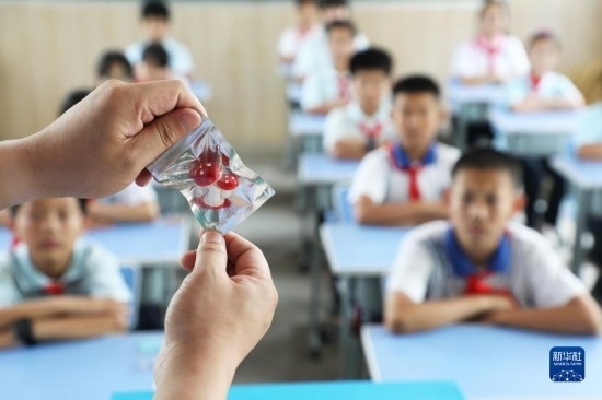 6月25日,在河北省唐山市豐潤區(qū)姜家營鎮(zhèn)楊家鋪小學,民警為學生講解毒品危害。