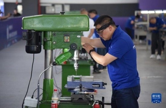 6月27日,參賽技術工人進行鉗工技能比拼。