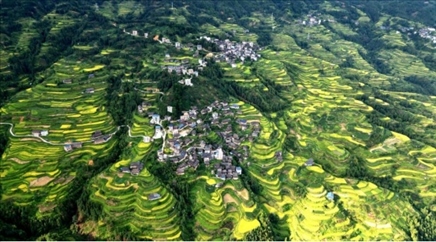 9月10日,無人機(jī)航拍的廣西三江侗族自治縣獨(dú)峒鎮(zhèn)的高山梯田秋色正濃,美如畫卷。