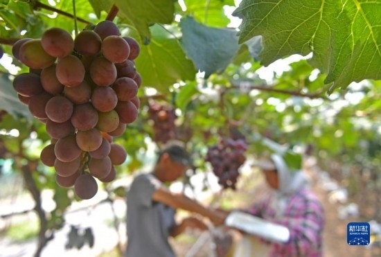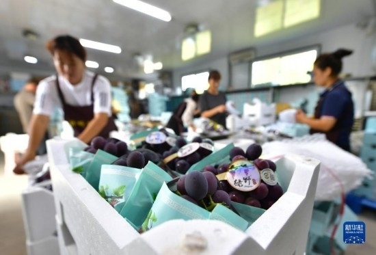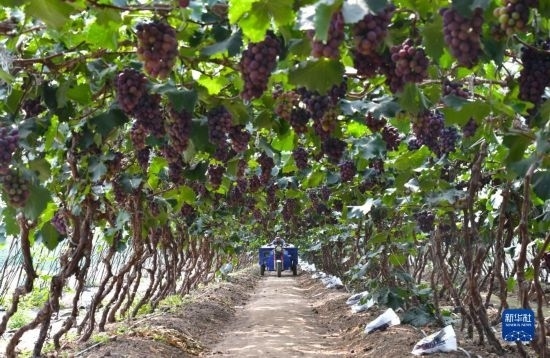 近日,遼寧省燈塔市種植的遼峰葡萄喜迎豐收。燈塔市出產(chǎn)的遼峰葡萄遠(yuǎn)近聞名,目前種植面積約1萬(wàn)畝。當(dāng)?shù)匾研纬善咸雅嘤⒎N植、銷售、倉(cāng)儲(chǔ)、加工相關(guān)產(chǎn)業(yè)鏈,葡萄是當(dāng)?shù)剞r(nóng)民致富增收的特色產(chǎn)業(yè)。