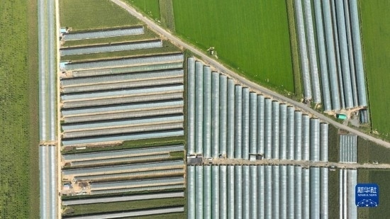9月7日拍攝的燈塔市柳條寨鎮(zhèn)遼峰葡萄核心產(chǎn)區(qū)的葡萄大棚(無(wú)人機(jī)照片)。