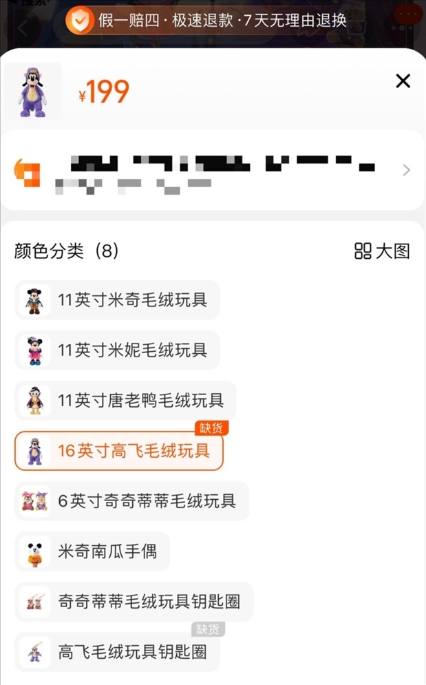 一位不愿意透露姓名的網(wǎng)友告訴紅星新聞,自己9月26日去上海迪士尼樂園,希望能購買“紫龍高飛”商品,然而大約中午就已斷貨。“工作人員告訴我們,沒有貨了,不用排隊(duì)了。就是因?yàn)檫@樣,我后來才高價(jià)買了商品?!?/p>