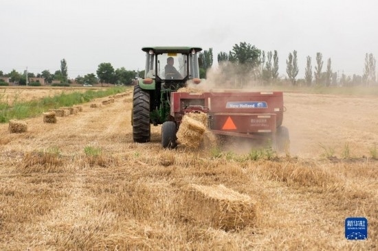 近日,寧夏小麥種植區(qū)由南到北陸續(xù)進(jìn)入收獲期,當(dāng)?shù)剞r(nóng)民緊抓農(nóng)時(shí)開(kāi)展夏收作業(yè),確保小麥顆粒歸倉(cāng)。麥?zhǔn)胀瑫r(shí)小麥秸稈也得到回收,用于牛羊養(yǎng)殖等領(lǐng)域,不僅提高了秸稈綜合利用率,還增加了農(nóng)民收入。