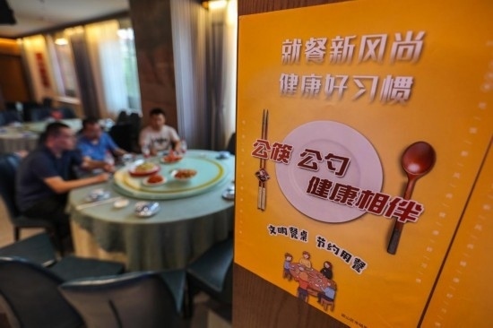 7月11日,記者在河北省邯鄲市邯山區(qū)一家飯店內看到張貼的節(jié)儉用餐相關標語。新華社記者 趙鴻宇 攝