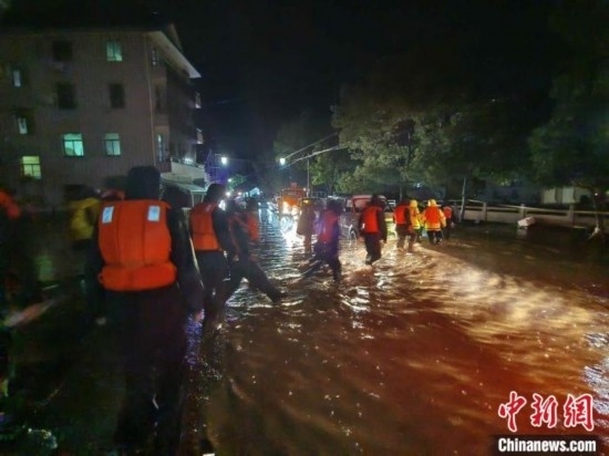 如在富陽(yáng)區(qū)大源鎮(zhèn)青山村,暴雨引發(fā)的洪水流過村莊道路,水勢(shì)湍急,村內(nèi)也出現(xiàn)停電情況,一些村民只能待在家中二樓,當(dāng)?shù)卣e極開展救援、轉(zhuǎn)移工作。富陽(yáng)常綠鎮(zhèn)也出現(xiàn)人員受困情況,當(dāng)?shù)氐谝粫r(shí)間轉(zhuǎn)移受困人員的同時(shí),安排多臺(tái)挖掘機(jī)、鏟車不間斷運(yùn)轉(zhuǎn)全力開展排水溝渠疏通、砂石淤泥清除等作業(yè)。在當(dāng)?shù)佚堥T鎮(zhèn),5名游客因?yàn)橥蝗唤涤隉o(wú)法下山,后在消防隊(duì)的幫助下被安全送至山下。