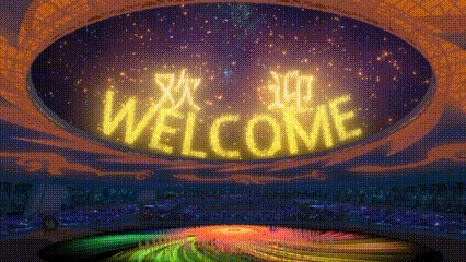 當(dāng)宣布本屆世界大學(xué)生運(yùn)動(dòng)會(huì)開(kāi)幕時(shí),空中金色焰火熱烈綻放,隨后空中出現(xiàn)“歡迎”“WELCOME”字樣,隨著大運(yùn)會(huì)火炬塔被點(diǎn)燃,焰火在空中打出成都第31屆世界大學(xué)生夏季運(yùn)動(dòng)會(huì)U形會(huì)徽,體育場(chǎng)上空焰火呈現(xiàn)英文“Make Dreams Come True”,命運(yùn)與共,成就夢(mèng)想。