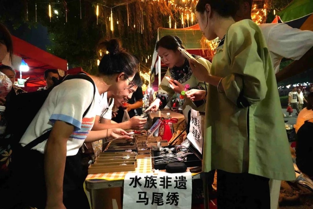 一位賣榕江卷粉、芋頭糕等特色小吃的小吃攤攤主說:“我們從早忙到晚,擺攤到凌晨1點(diǎn)鐘左右,人太多了,一天能賣幾百碗?!?/p>