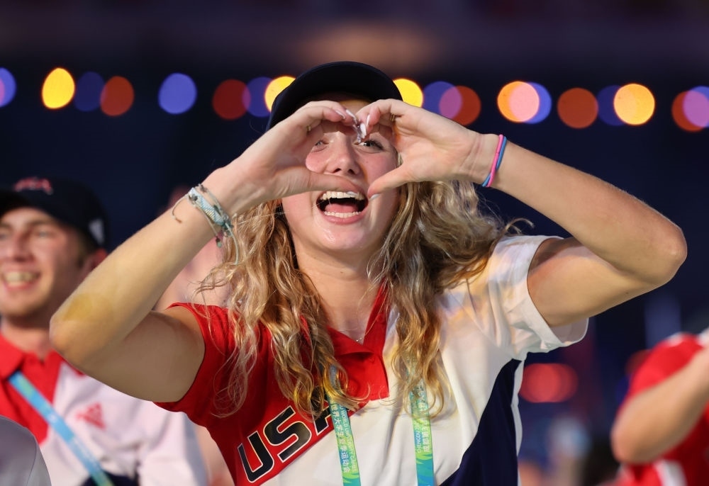 7月28日,美國大學(xué)生體育代表團(tuán)在開幕式上入場。新華社記者 楊青 攝
