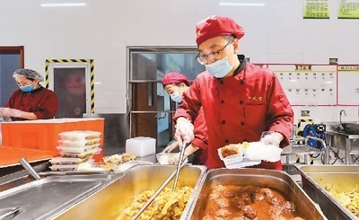8月1日,在天津市武清區(qū)職業(yè)教育中心臨時安置點,工作人員為永定河泛區(qū)轉(zhuǎn)移人員準備午飯。新華社記者 孫凡越攝