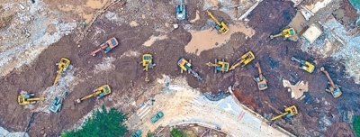 8月4日,救援人員在北京房山區(qū)十渡鎮(zhèn)六渡橋搶修道路,打通交通生命線。本報記者 張武軍攝