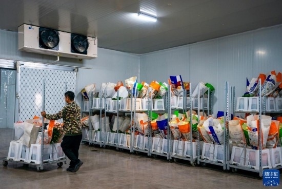 在云天化晉寧花卉產(chǎn)業(yè)現(xiàn)代化示范園內(nèi),一名花農(nóng)將新采摘的鮮花推入冷庫(kù)進(jìn)行預(yù)冷處理(7月12日攝)。新華社記者 陳欣波 攝