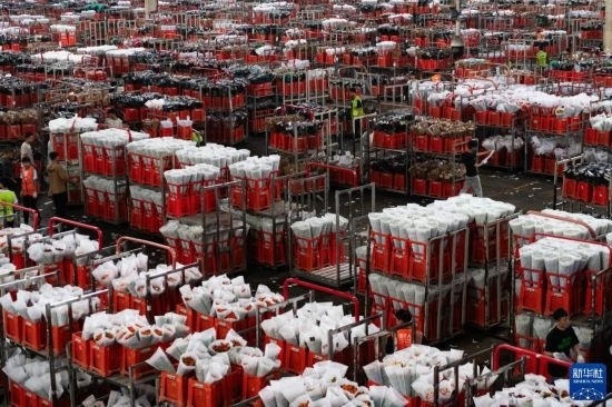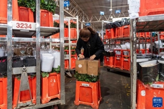 每天,由花農(nóng)采摘的鮮花進(jìn)入分揀包裝車(chē)間,預(yù)冷、分級(jí)、包裝、入庫(kù)冷藏等工作井然有序地開(kāi)展。經(jīng)過(guò)采后處理的鮮花一部分通過(guò)園區(qū)自有物流直接向客戶(hù)發(fā)貨,一部分則由專(zhuān)門(mén)的鮮花運(yùn)輸車(chē)運(yùn)往昆明國(guó)際花卉拍賣(mài)交易中心,開(kāi)啟拍賣(mài)流程。