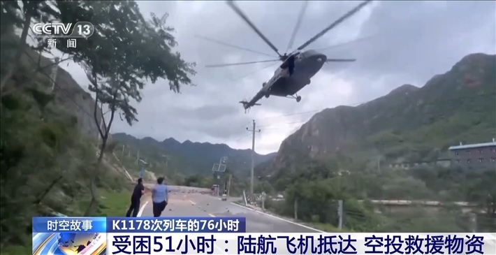 8月1日下午4:00,K1178次列車被困51小時(shí)后,某陸航旅4架滿載應(yīng)急物資的飛機(jī),克服不利氣象因素,在北京門頭溝地區(qū)執(zhí)行空投任務(wù),并為K1178次列車空投救援物資。然而,由于沿河城站位于山谷中,地形狹長(zhǎng),周邊環(huán)境復(fù)雜,再加上氣象條件不好,空投一開(kāi)始并不順利。