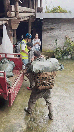 姚勝旺背著一籮筐姜回家。
