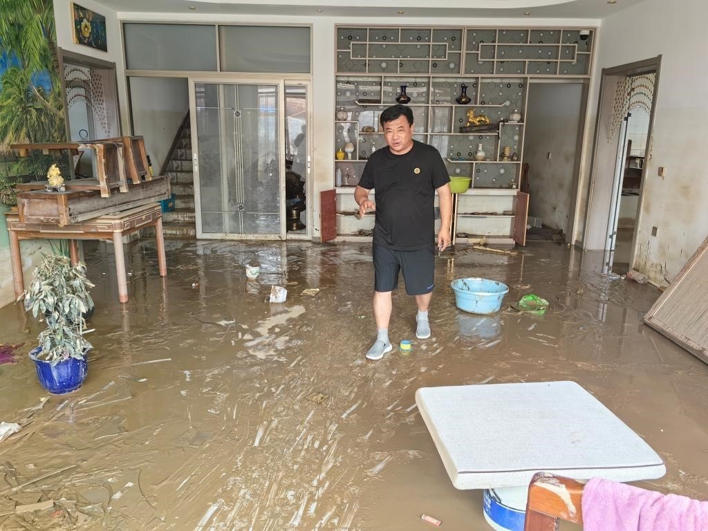 望海莊村艷天綜合商店門前,村民楊立新和趕來(lái)幫忙的親戚朋友正在一起整理受損貨品,這個(gè)村里最大的超市此次受災(zāi)較重。“損失不少,但我們不能光等著,先把能搶救的搶救出來(lái),能收拾的都收拾干凈,盡己所能先恢復(fù)?!睏盍⑿抡f(shuō)。