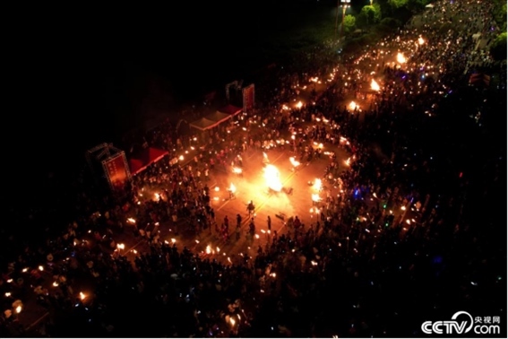 2023年8月10日,云南楚雄舉行中國(guó)·楚雄2023年彝族火把節(jié)活動(dòng),游客與當(dāng)?shù)孛癖娨黄饸g慶火把節(jié)。