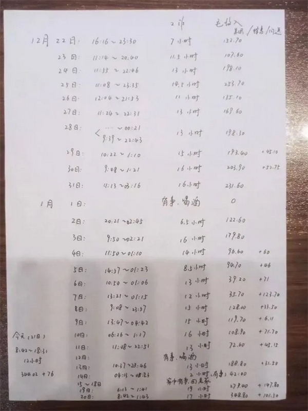 邢斌體驗(yàn)外賣員期間記錄的賬單